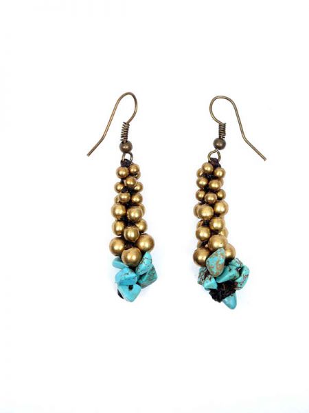 Pendientes racimo latón piedras, pendientes realizados con bolas de latón y piedras de color azul, precio por par