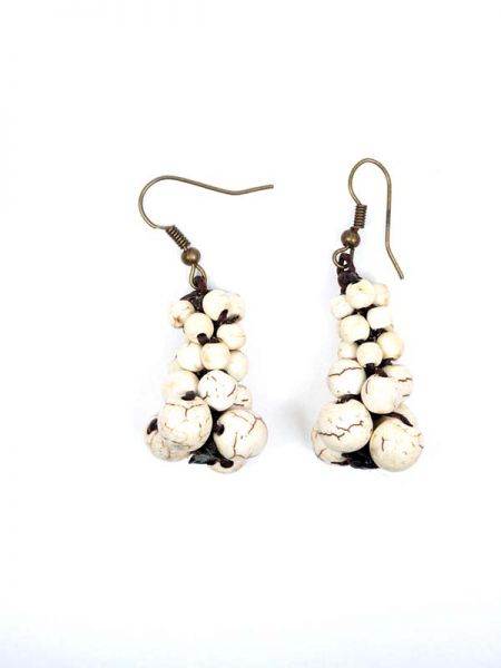 Pendientes realizados con bolas de piedras de color blanco en forma de racimo, cierre de latón precio por par(4.95€)