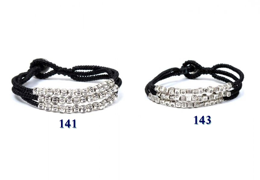 Pulsera plateada de cuentas étnicas, realizada con varias líneas de cordón encerado trenzado y pequeñas cuentas metálñicas grabadas, tiene cierre de botón(9.95€)