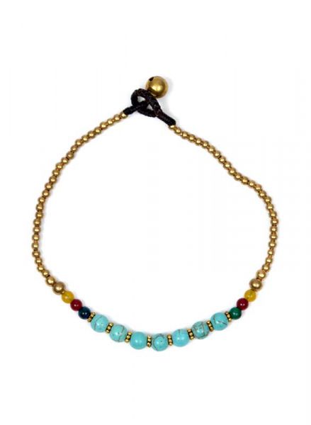 Tobillera turquesas bolar latón,realizada engarzando bolitas de turquesas y latón sobre hilo encerado, cierre de cascabel(9.95€)